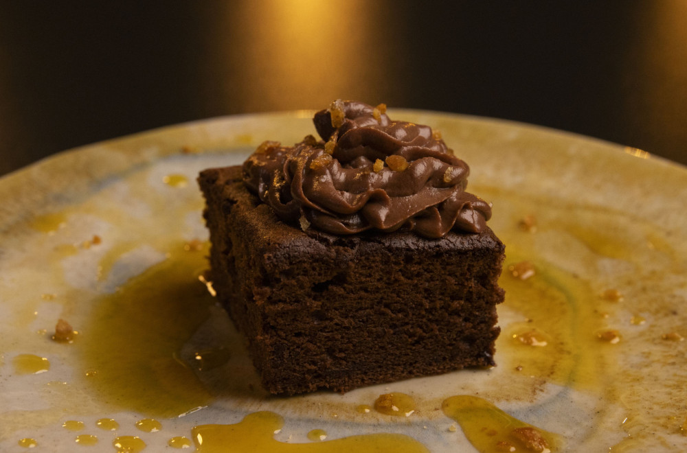 Elegantna mini mekika punjena ručno pravljenim svežim sitom od ovčjeg mleka obogaćenim potočarkom sa reke Gradac, simbolom čistog izvora. U srcu punjenja nalazi se riet od dimljene pastrmke, dok vrh jela nosi raskošnu krošnju tankih listića tartufa.