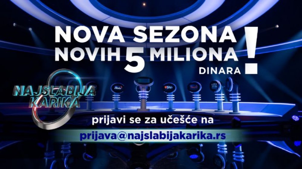 Svi oni koji želele da pokažu svoje znanje i dokažu da su najjača karika mogu da se prijave putem mejl adrese prijava@najslabijakarika.rs U prijavi je potrebno navesti ime, prezime i kontakt telefon, a kandidati moraju biti punoletne osobe.