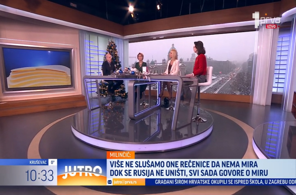 Gosti: profesorka Fakulteta političkih nauka dr Dragana Mitrović, glavna urednica „Sputnjika“ u Srbiji Ljubinka Milinčić i diplomata Zoran Milivojević.