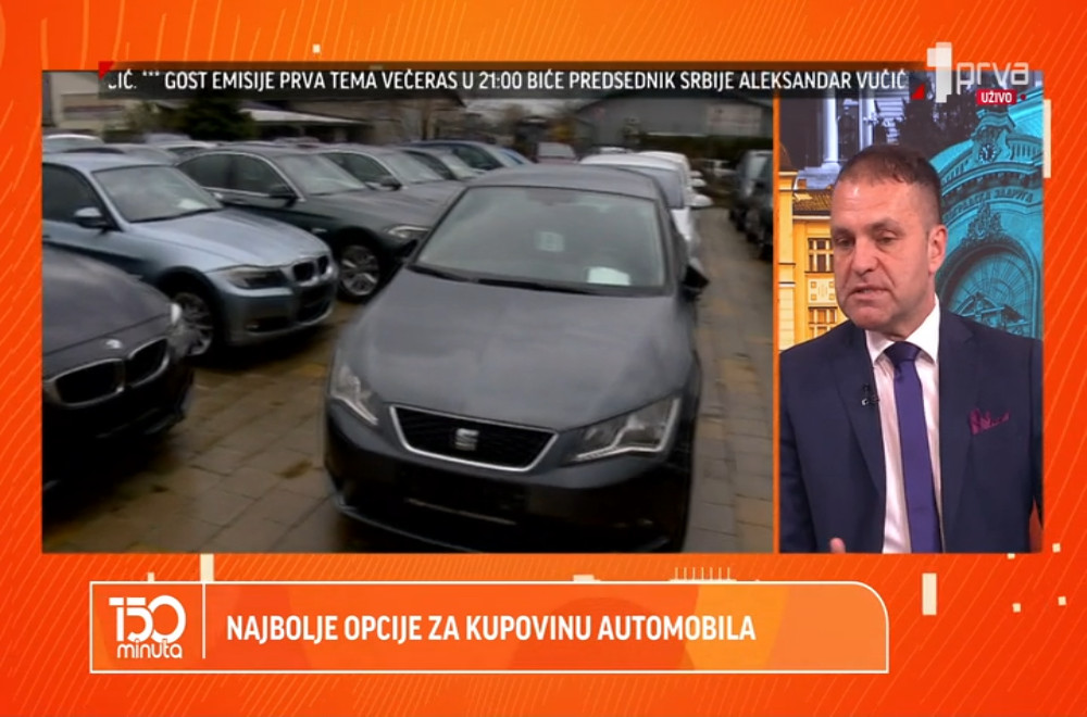 Gosti: finansijski stručnjak Vladimir Vasić i Petar Veličković ispred „Polovnih automobila“.