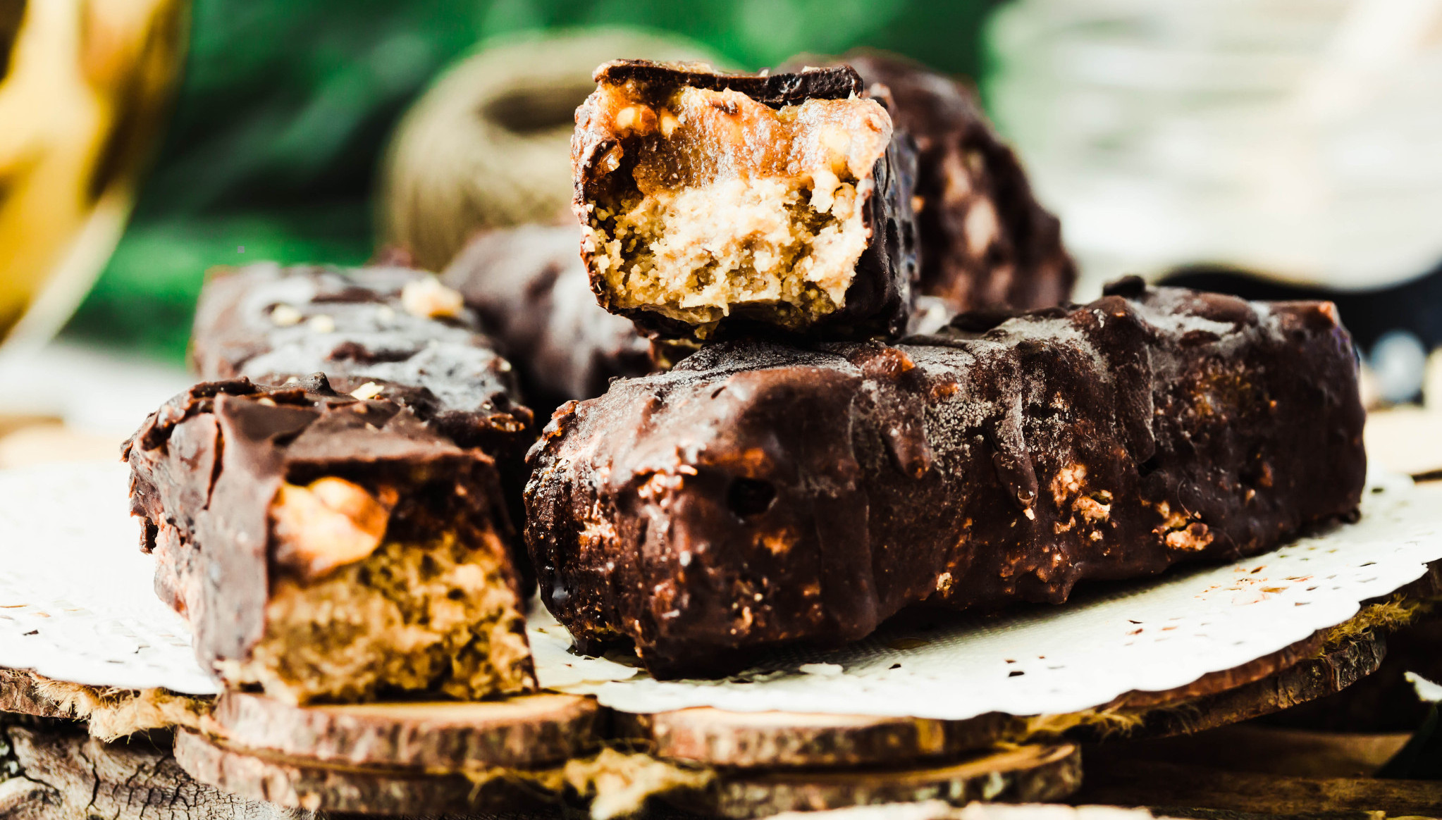 Sve što je potrebno jeste da par banana isečete na pola, pa na još jednu polovinu. Poređajte ih na papir za pečenje, a zatim preko njih poređajte očišćene urme. Preko urmi stavite kikiriki puter, a potom sve prelijte istopljenom čokoladom i ostavite u frižider da se stegne.