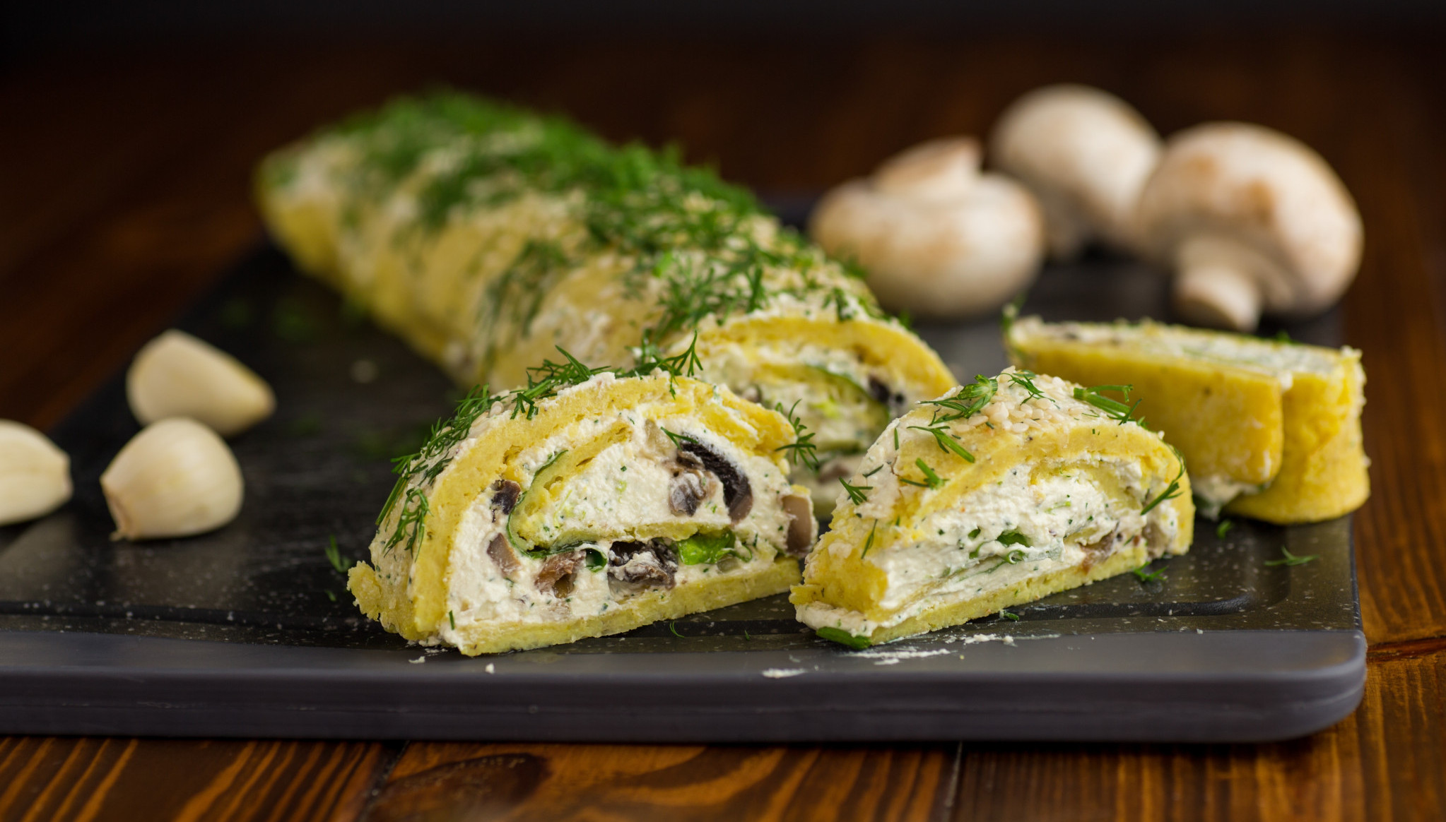 Pomešajte krem sir, pavlaku i vlašac, pa premažite na "koru" od krompira i tikvice. Naređajte kriške lososa (ili nečeg drugog po želji) i urolajte.