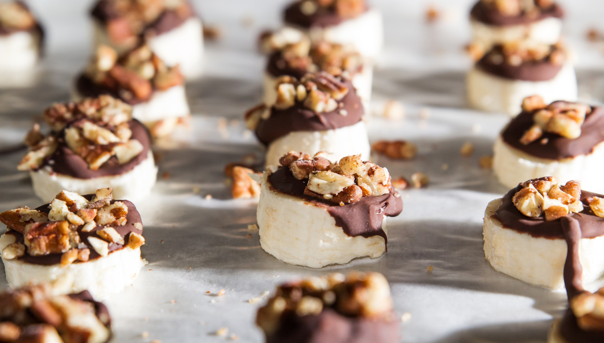 Sve što je potrebno jeste da iseckate bananu na kolutiće i poređate ih na tepsiju obloženu papirom za pečenje. Zatim preko banana premažite kikiriki puter i istopljenu čokoladu, a po želji možete dodati i seckani kikiriki ili druge orašaste plodove.