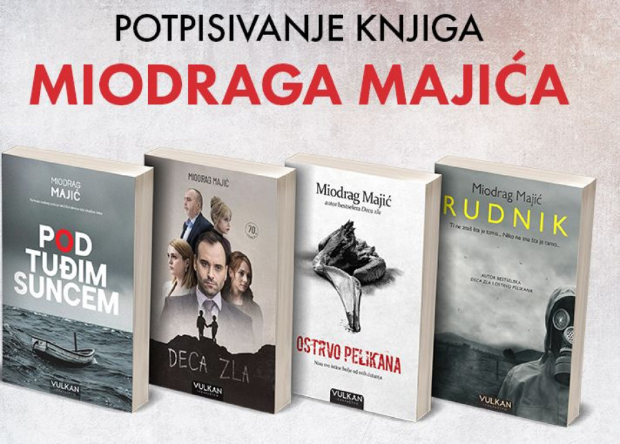 Poseban događaj na štandu Vulkan izdavaštva biće 20. marta u 18 časova, kada će knjige potpisivati jedan od najpopularnijih savremenih domaćih autora, pisac i sudija Miodrag Majić. Njegovi romani Deca zla, Pod tuđim suncem i Ostrvo pelikana već godinama se nalaze među najčitanijim naslovima domaće književnosti.