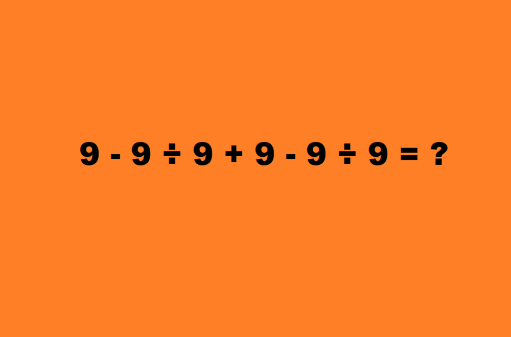 Zadatak glasi ovako: 9 - 9 ÷ 9 + 9 - 9 ÷ 9 = ?