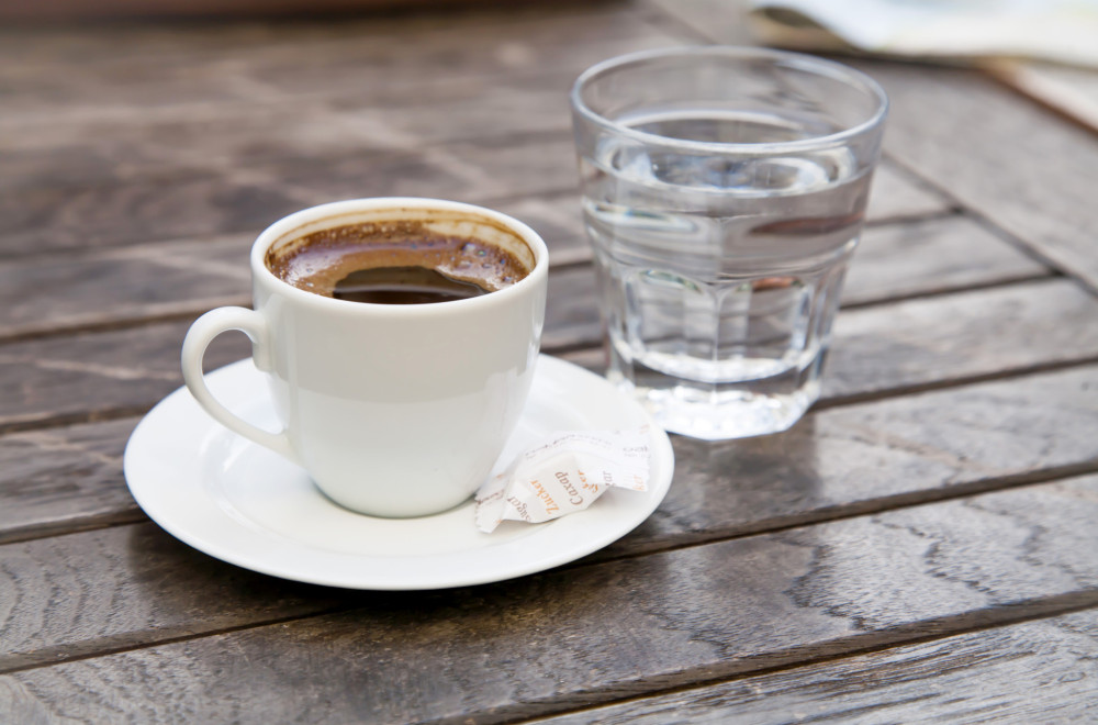 Nije im se dopadalo to što kašičicu uprljaju penom, a potom takvu moraju da je stave na rub tacne. Mnogi su tada taj potez shvatali nekulturnim i nimalo elegantnim, pa su ugostitelji uveli čašu vode koja se dobija uz kafu. Njena svrha je bila da gosti mogu da isperu prljavu kašičicu, a tek onda je spuste na tacnu, piše Novi.ba.