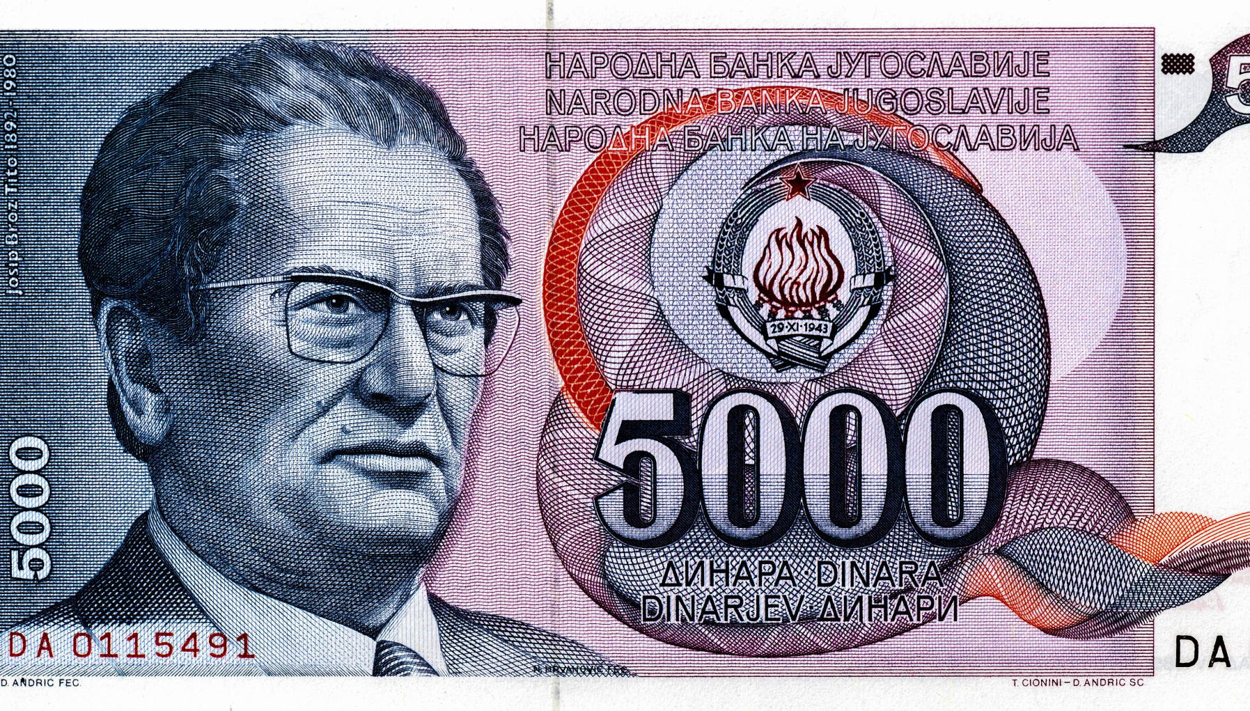 Godine 1985. izlazi nova serija novčanica, koja je započeta uvođenjem novčanice od 5.000 dinara sa likom preminulog jugoslovenskog predsednika Josipa Broza Tita.