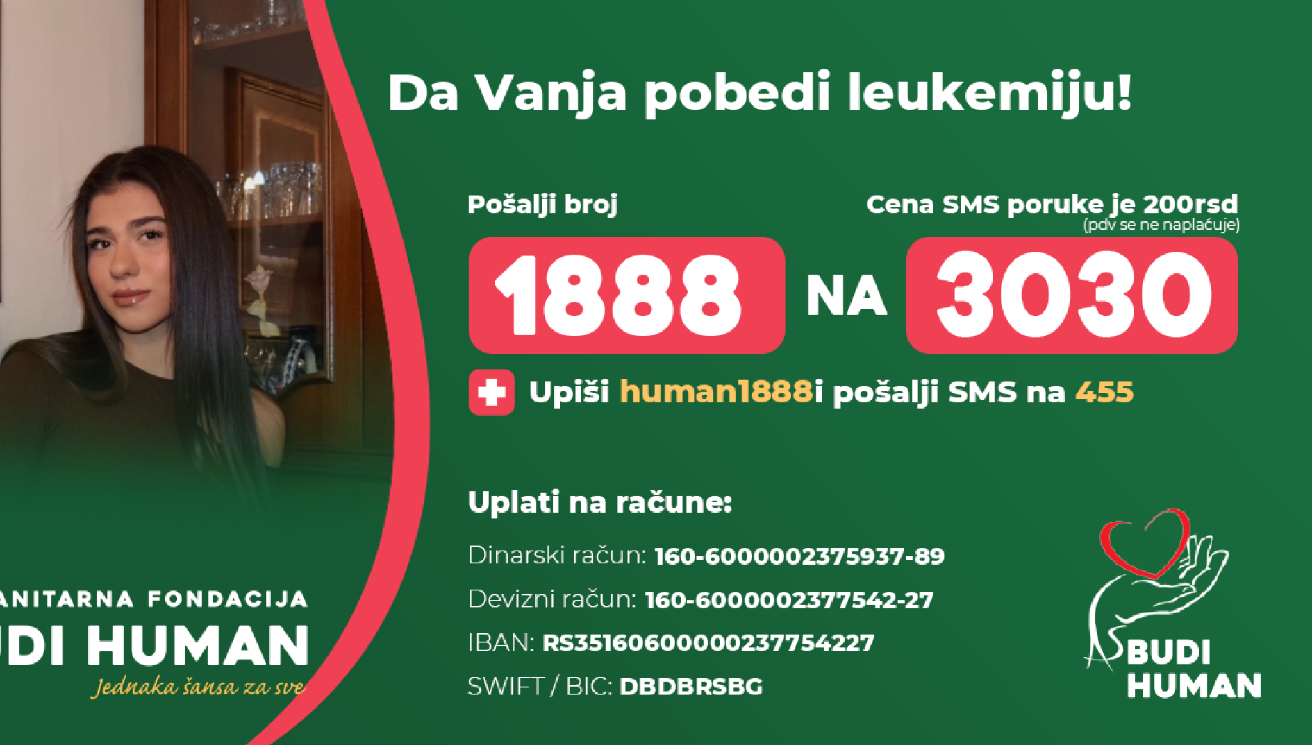Vanji je sada potrebna pomoć svih ljudi dobre volje. Svaka donacija može biti korak bliže životu bez leukemije.